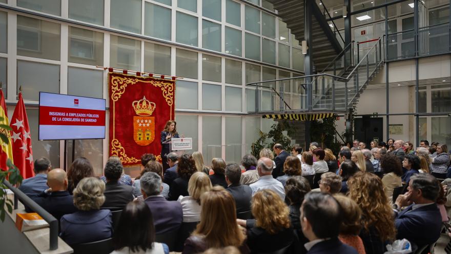 La consejera de Sanidad de la Comunidad de Madrid, Fátima Matute, ha entregado hoy las insignias de oro y plata para reconocer la labor de 51 empleados públicos que llevan trabajando –30 y 20 años respectivamente– en los Servicios Centrales de la Consejería...